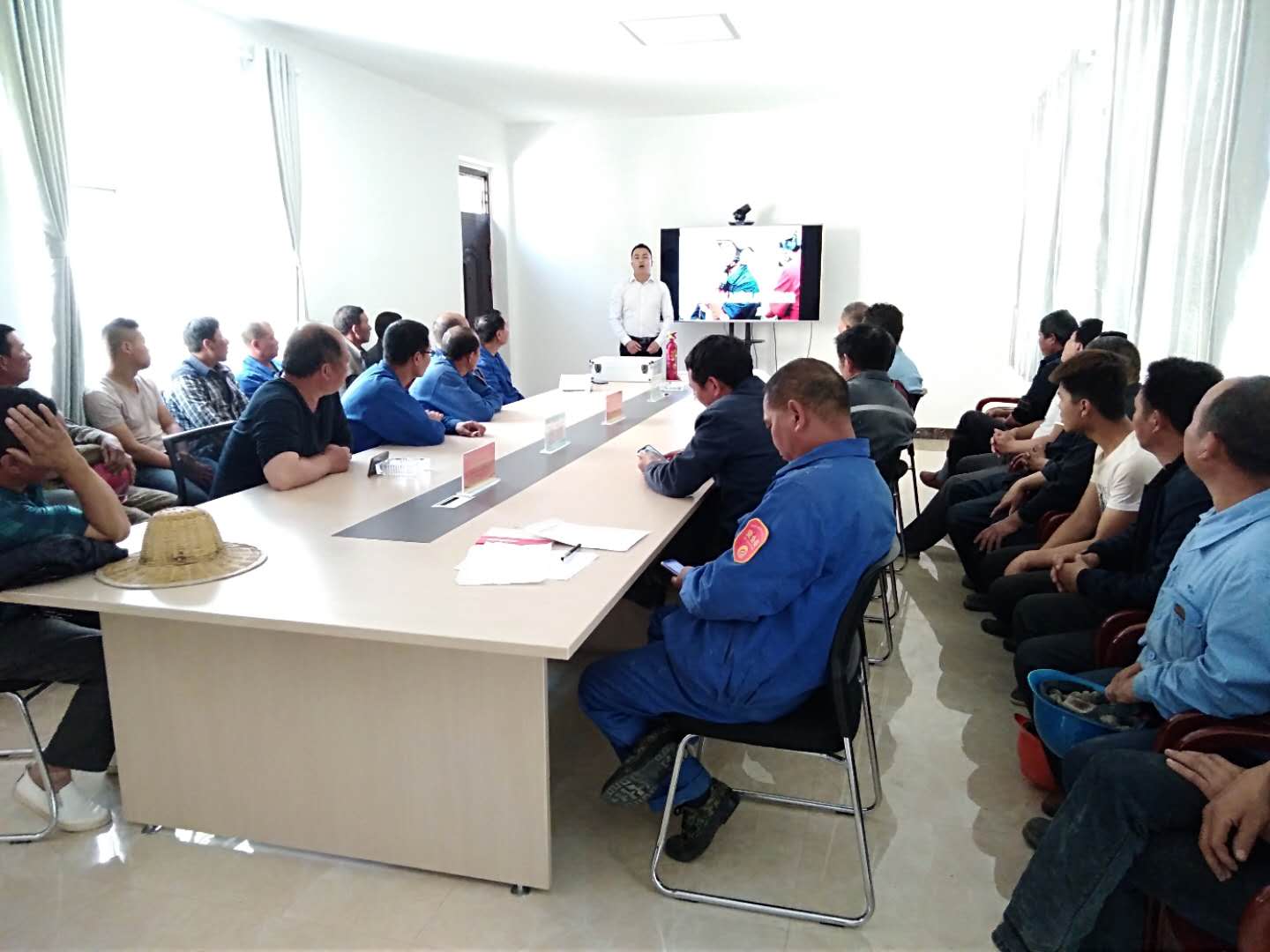 此次演練特邀請(qǐng)河南省消防培訓(xùn)中心教官,對(duì)參演人員針對(duì)露天礦山開(kāi)采易發(fā)生的滑坡、坍塌、車(chē)輛、火災(zāi)典型事故案例及消防、人員急救知識(shí)進(jìn)行了視頻課件教學(xué)培訓(xùn)。參加人員有礦山車(chē)間和現(xiàn)代爆破公司共計(jì)30余人參加。